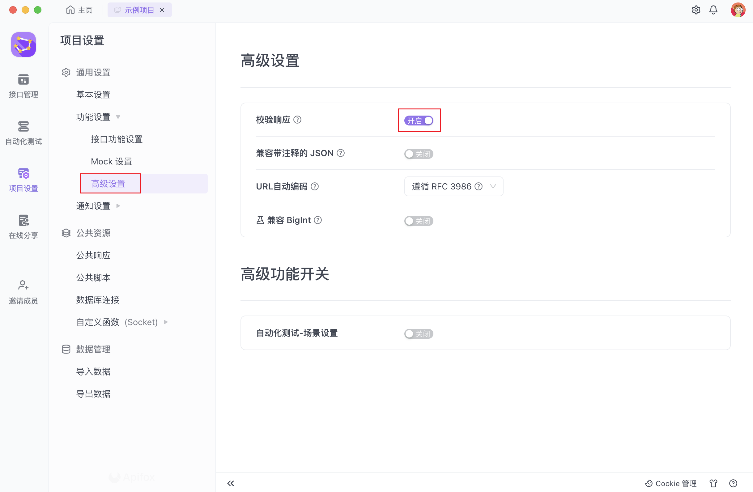 校验响应 是一个高效的测试工具,以 接口文档-修改文档 页面内填写的 返回响应 作为判断标准,与 请求接口 的获得的返回值进行对比。