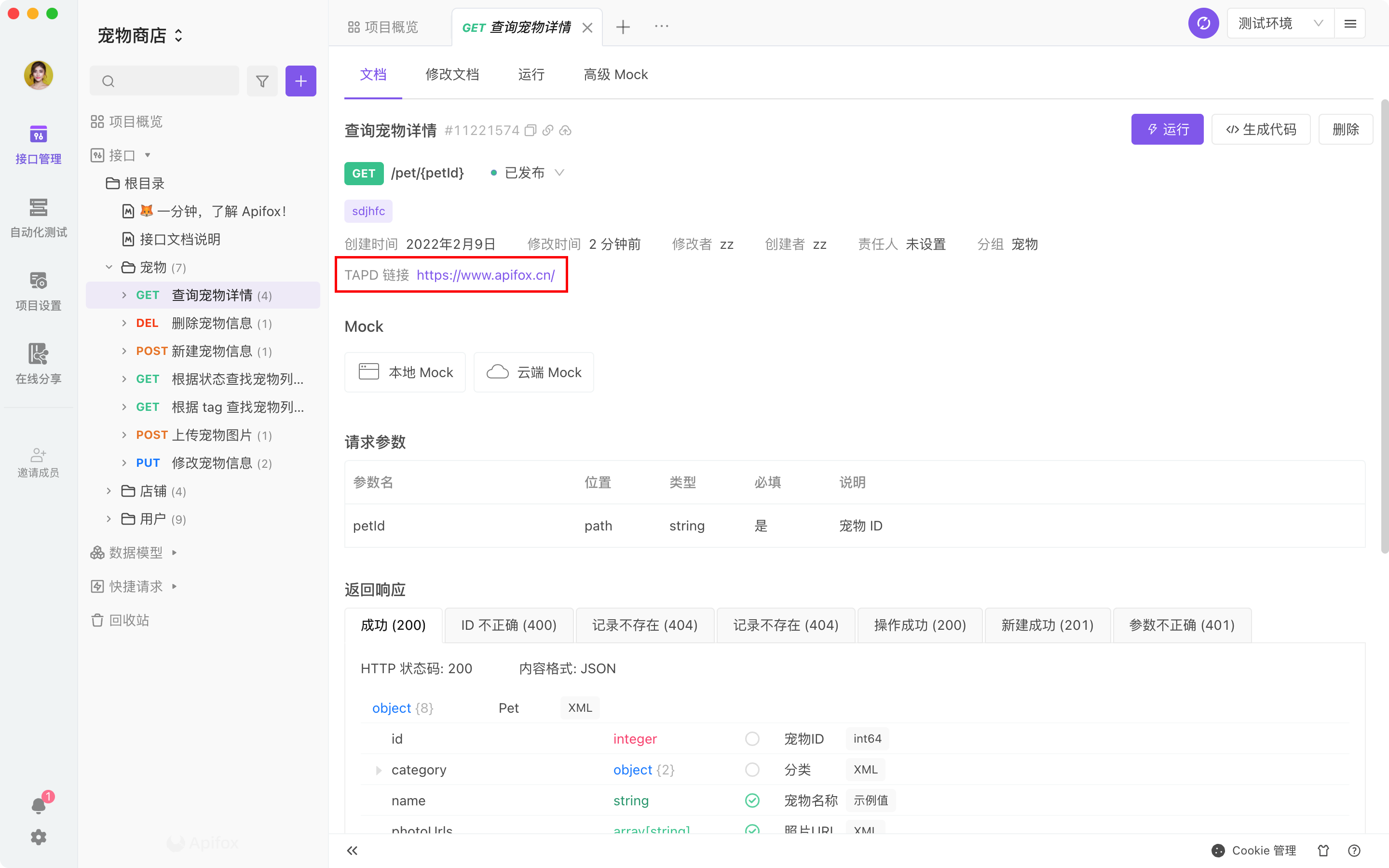 自定义字段功能,可以支持到项目管理者,可以根据自己的需要,设置接口文档的通用字段,比如:创建时间、TAPD 链接、需求文档链接等,更方便的管理项目