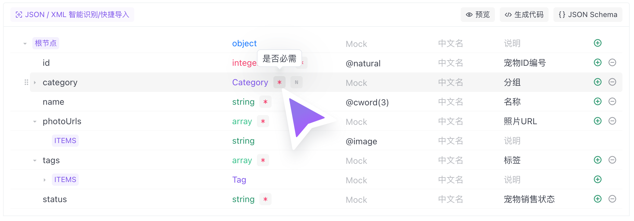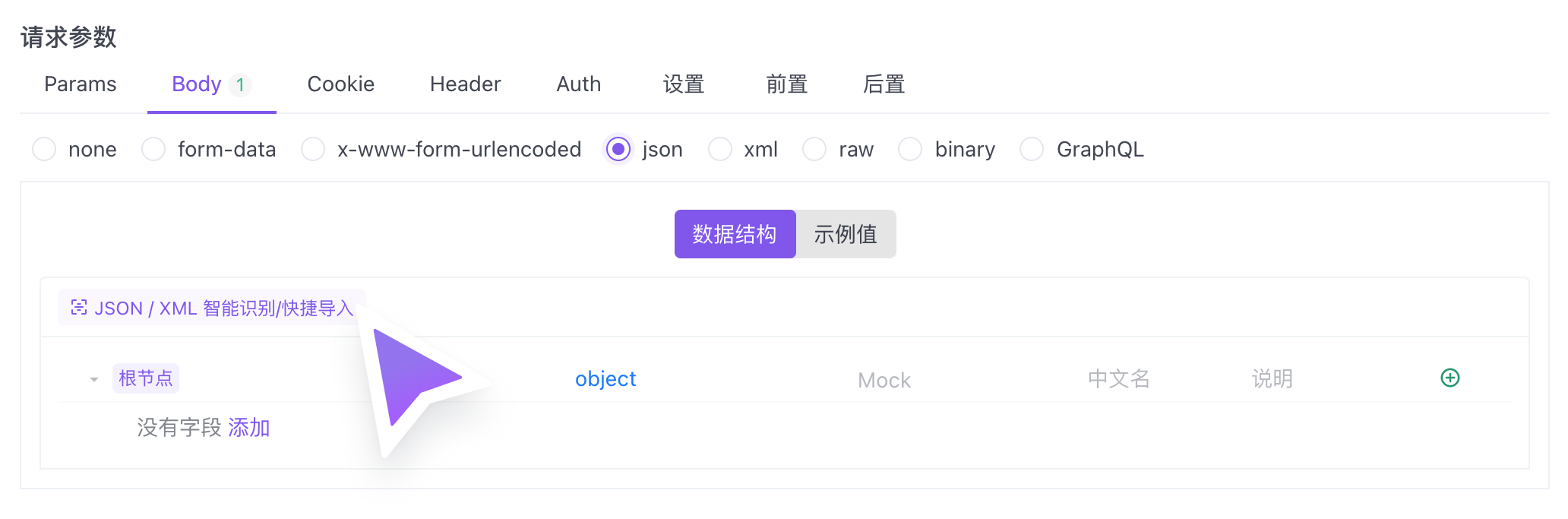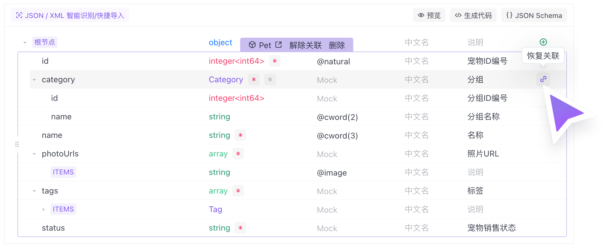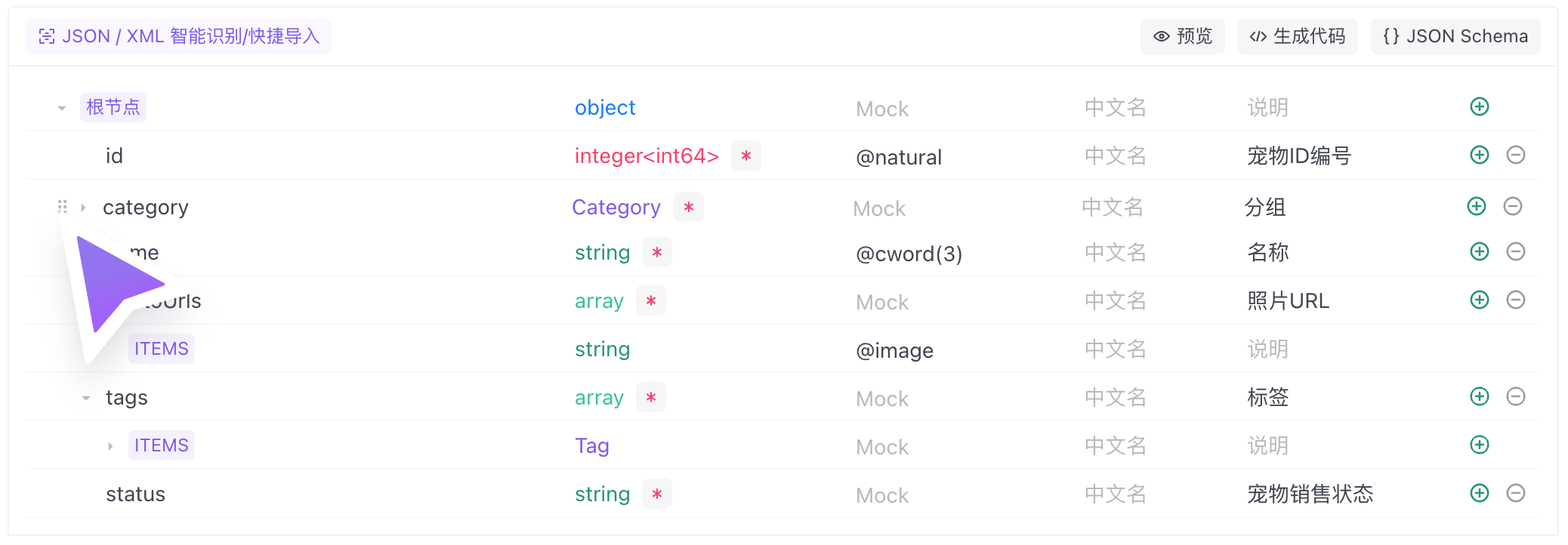 通过 JSON 数据自动识别生成数据结构,如果你已经有 JSON 数据了,这是一个快捷生成的方式。