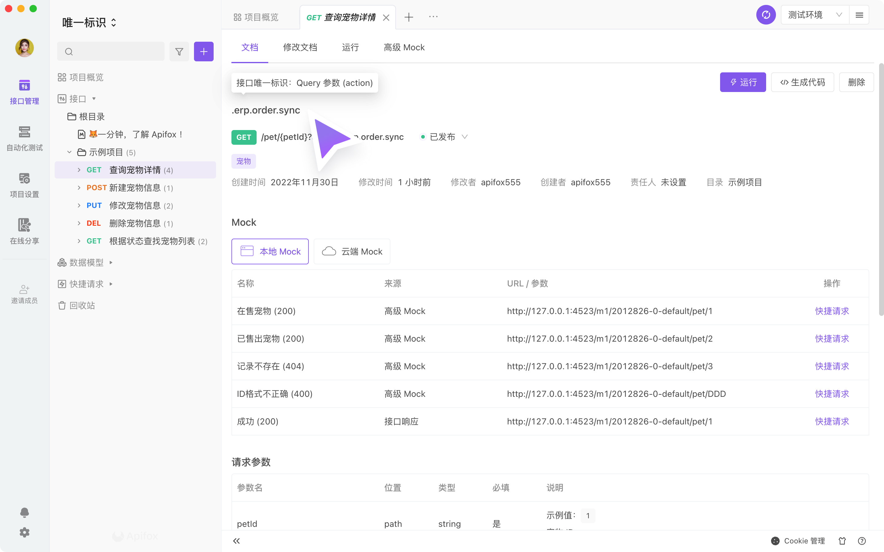 接口唯一标识的项目,接口填写需要规范,避免出现同 URL 的接口但没有设置接口唯一标识的情况。避免无法正确的获得 Mock 数据