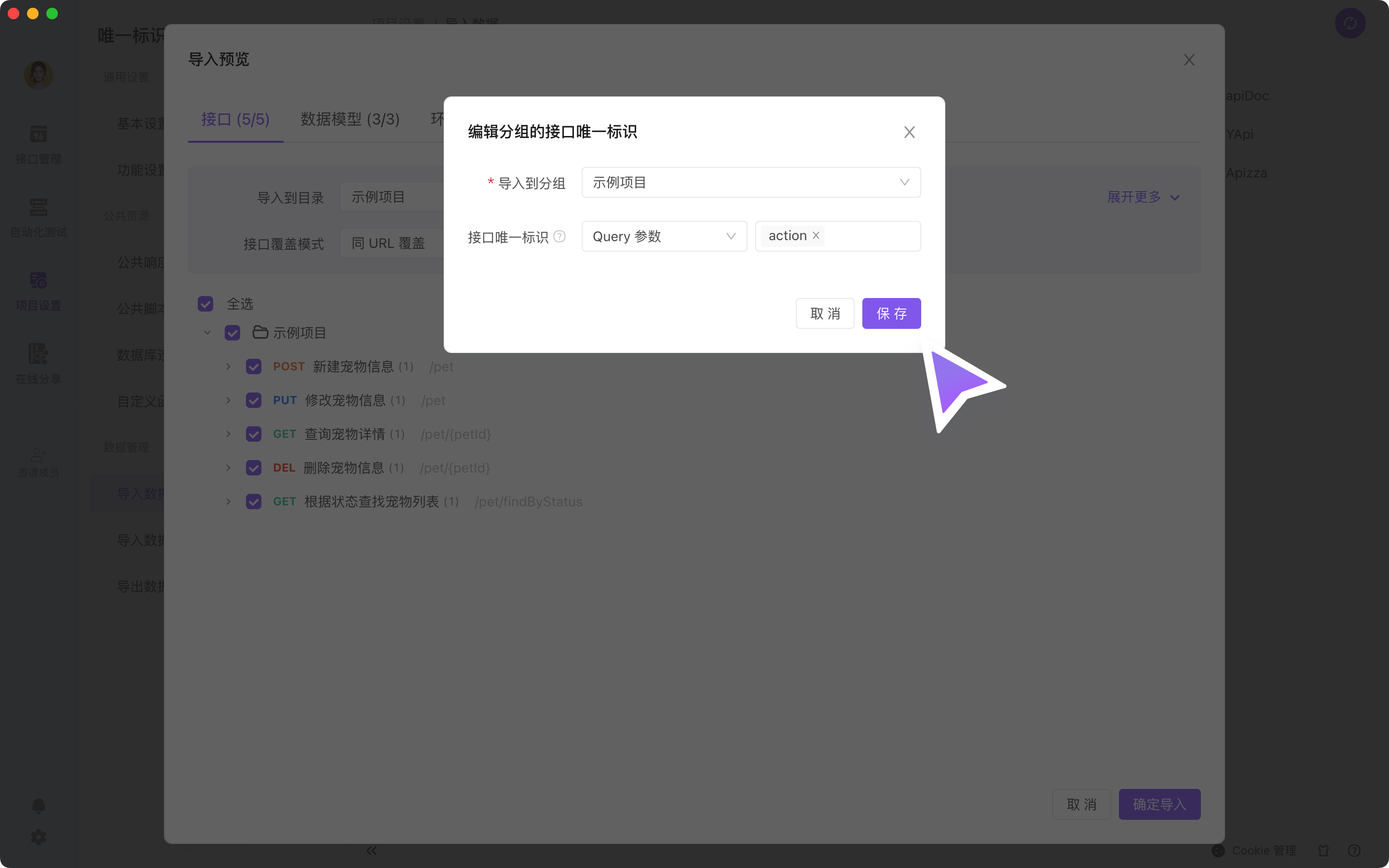 导入时匹配接口的规则,根据导入的目标 目录 的设置为准。当导入的目标 目录 的设置 接口唯一标识 不符合需要时,可以在导入设置中修改;修改后,会直接对目标 目录 生效。