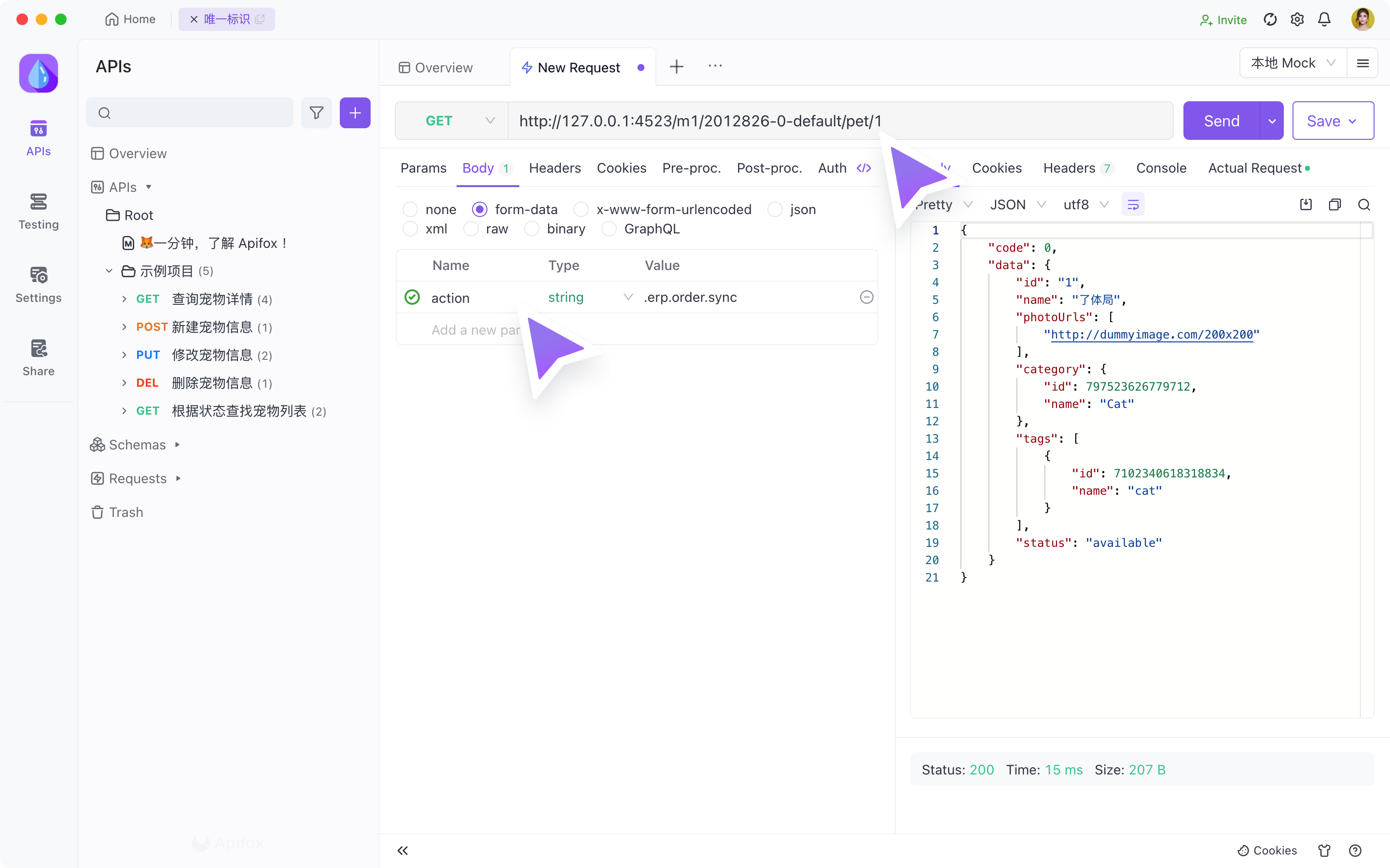 在 2.2.24 版本之后,如果接口设置了 接口唯一标识 为 Body 参数、Header 参数,需要通过发送 路径 + 唯一标识的参数与参数值,才能获得对应的 Mock 数据。