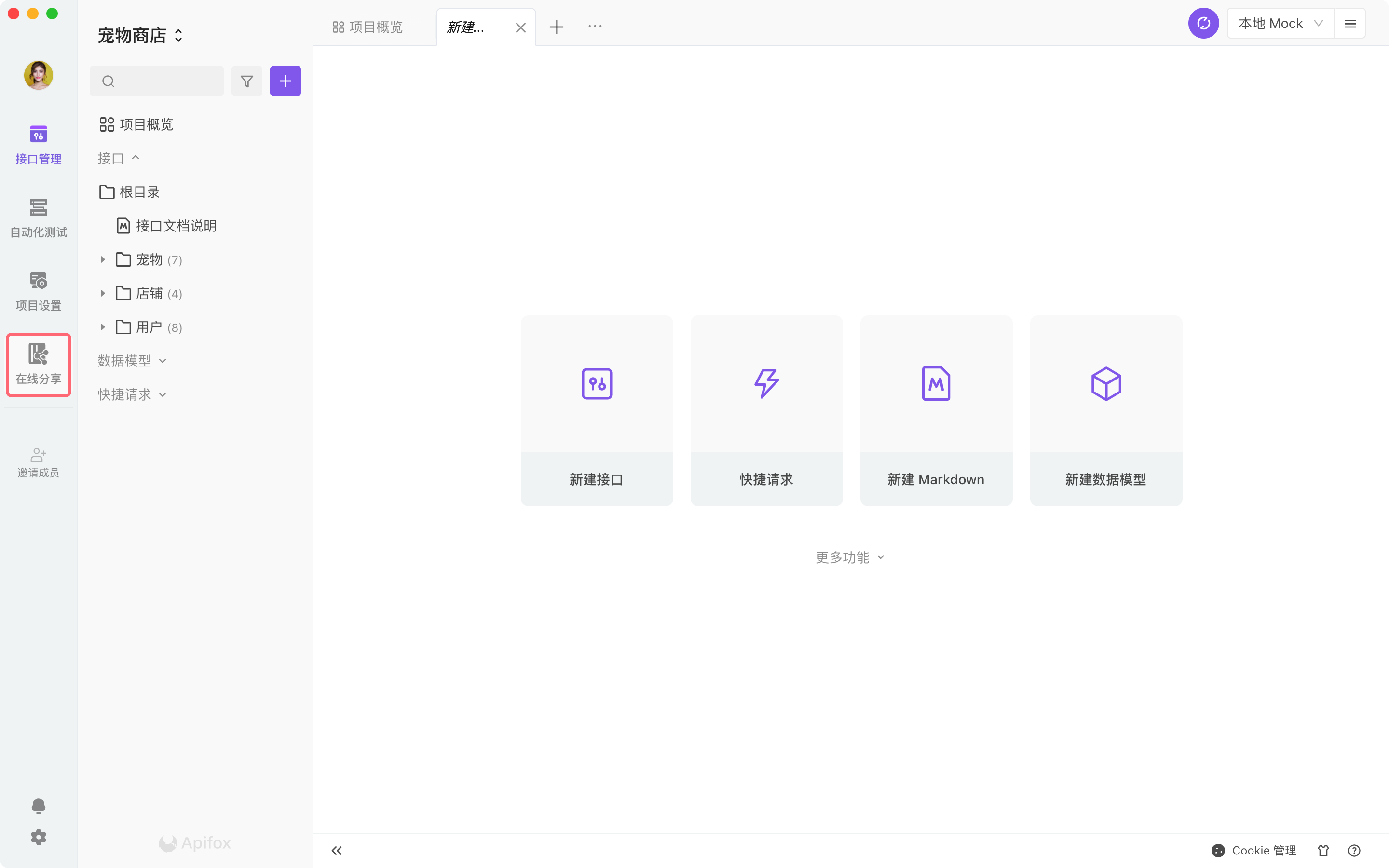 在软件界面左侧,就可以设置当前项目的在线文档
