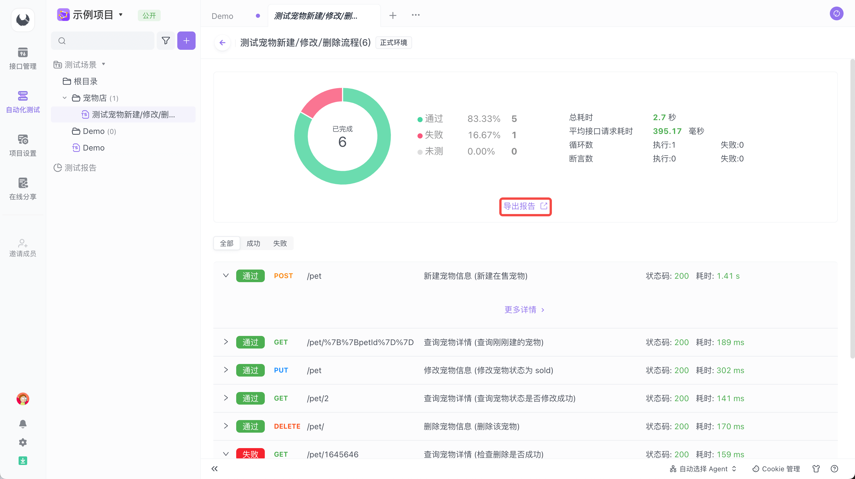 如果你可以访问此报告的请求/响应详情,那么可以勾选“同时分享请求/响应详情”选项,将这份测试报告中的所有接口请求/返回详情一并进行分享。其他用户打开链接后也可以直接看到该测试报告的详情,提升团队协作效率。