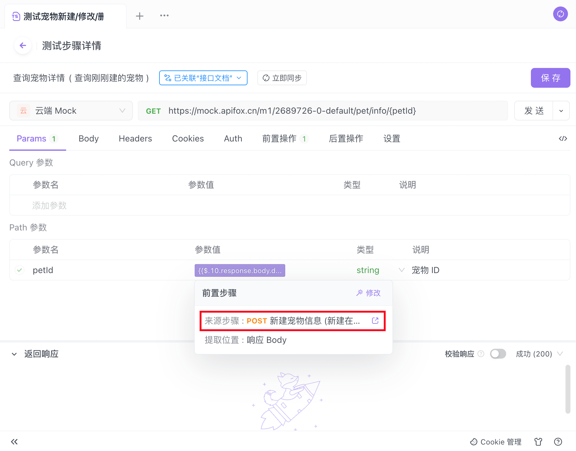 如果在测试报告中发现结果异常的原因是某个接口所引用的变量出现异常,那么可以在测试步骤中通过查看“前置步骤”功能快速定位当前接口引用的变量。