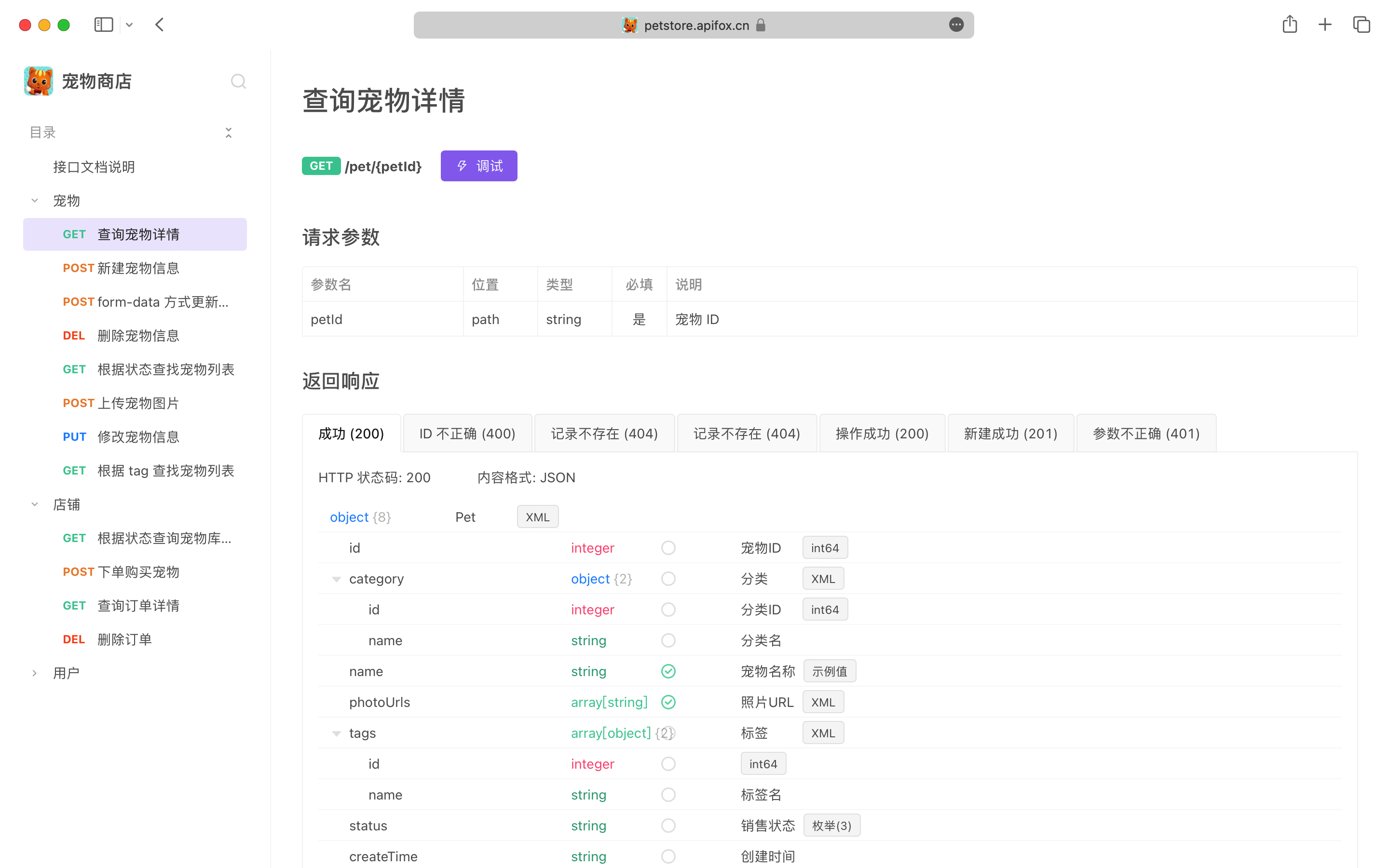 体验地址:https://petstore.apifox.cn/