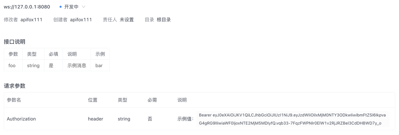 WebSocket 接口功能要求 Apifox 版本号 ≥ 2.2.32。